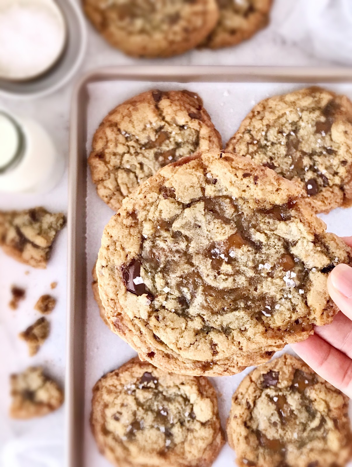 16. Immediately sprinkle the cookies with sea salt flakes and allow the cookies to cool completely. They are very soft at first and will set after they cool completely.